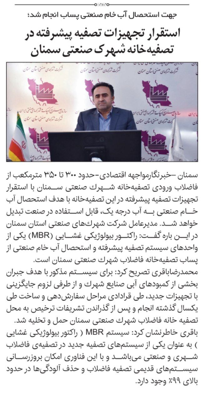 نصب تجهيزات پيشرفته در تصفيه‌خانه شهرك صنعتی سمنان جهت استحصال و تبدیل آب خام به آب صنعتی