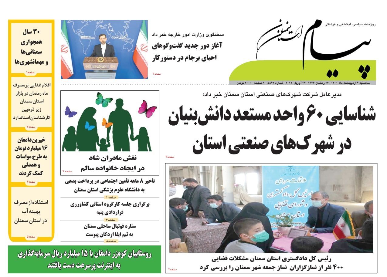 • گروه خبری : اخبار صفحات استان,سمنان,1-2-اخبار استاني,گروه آرشیو تمام اخبار استان