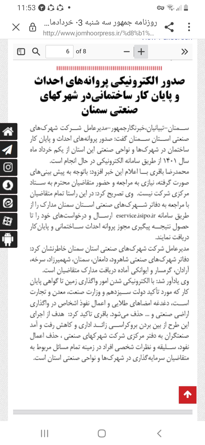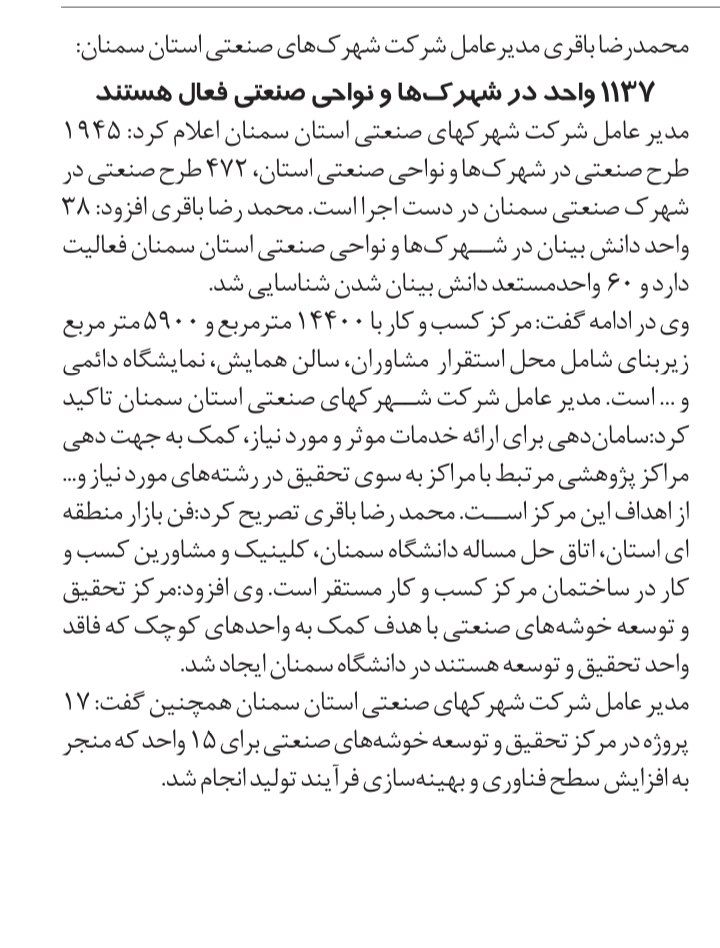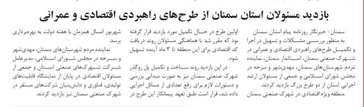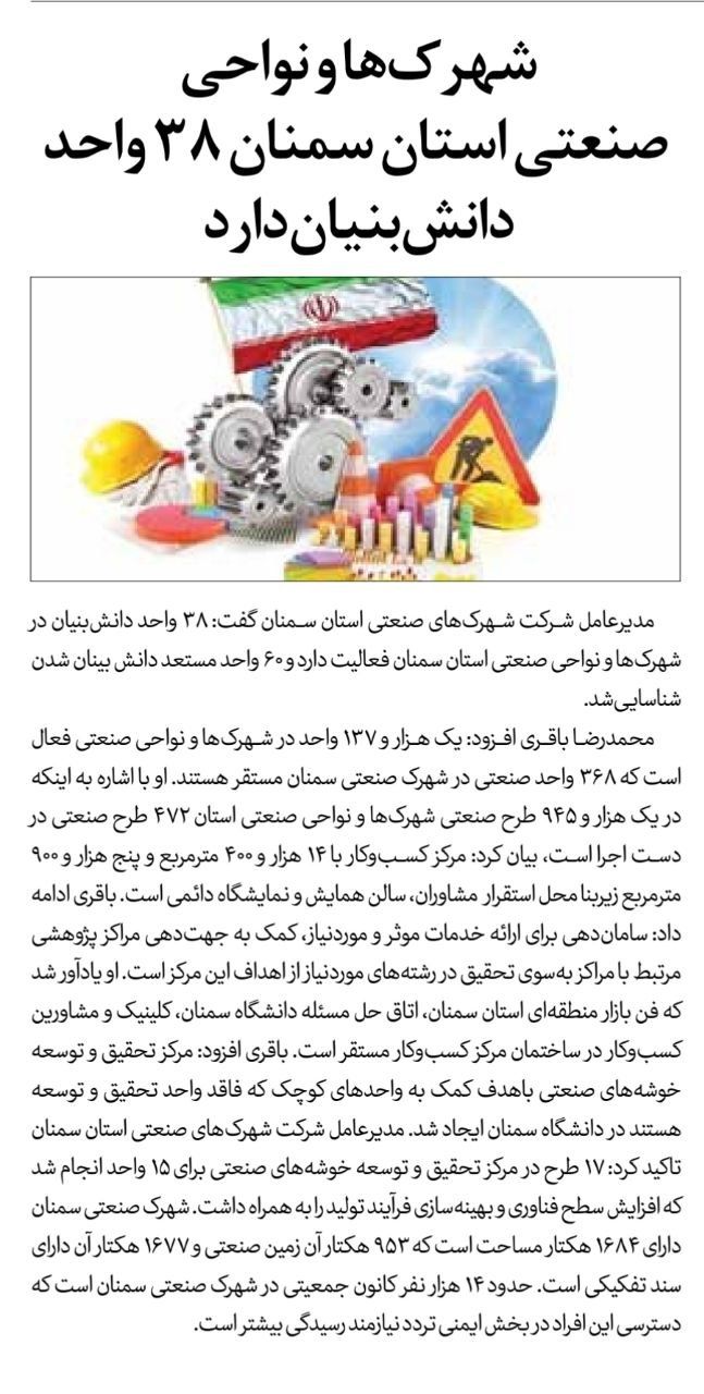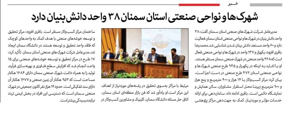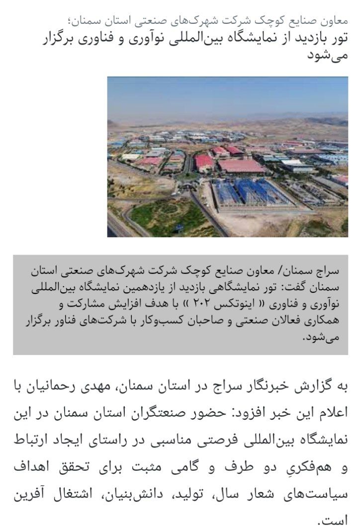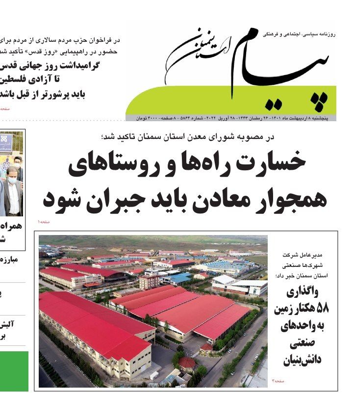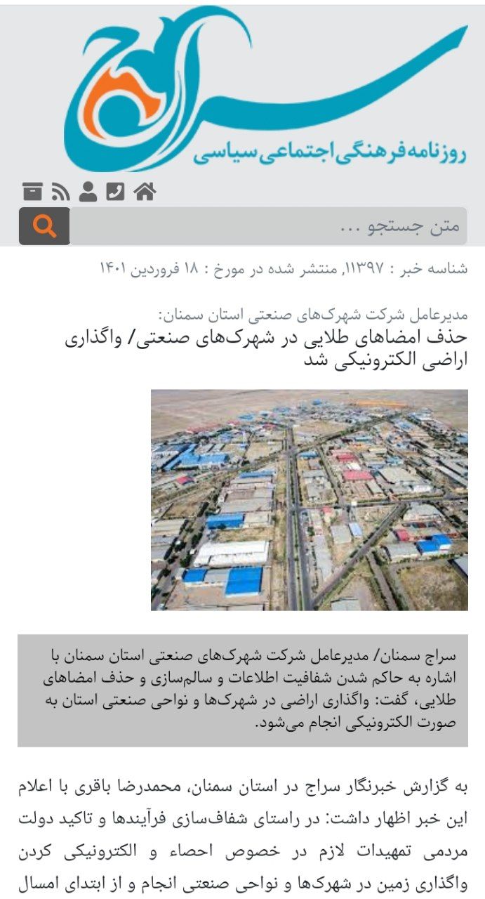 شركت شهرك‌هاي صنعتي استان سمنان در آينه رسانه/ فروردين و ارديبهشت 1401