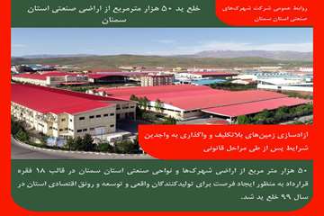 خلع يد۵۰ هزار مترمربع از اراضی شهرک‌های صنعتی استان سمنان