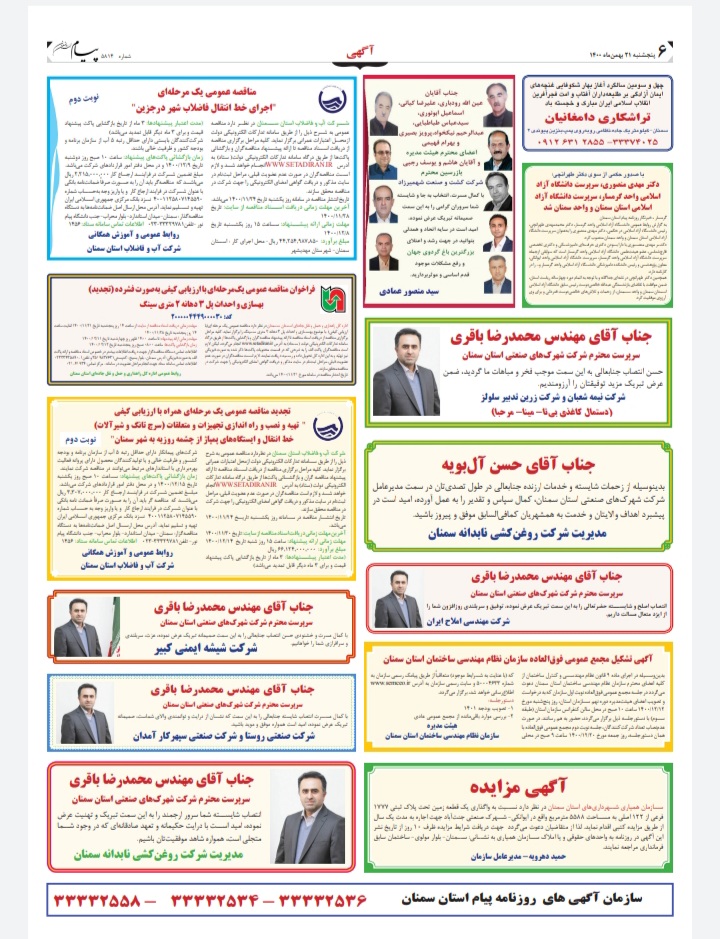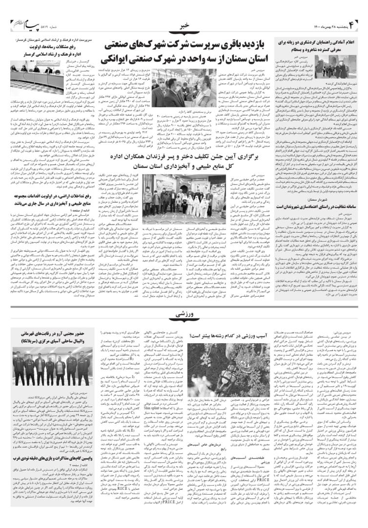 • گروه خبری : اخبار صفحات استان,سمنان,1-2-اخبار استاني,گروه آرشیو تمام اخبار استان