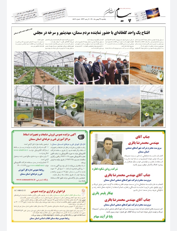 شرکت شهرک‌های صنعتی استان سمنان در نگاه جراید و خبرگزاری‌ها- بهمن 1400