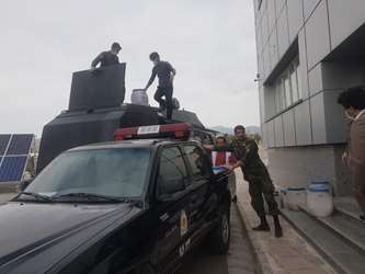 عملیات ضدعفونی معابر و بلوارهای اصلی شهرک صنعتی سمنان با همکاری يگان ويژه سمنان