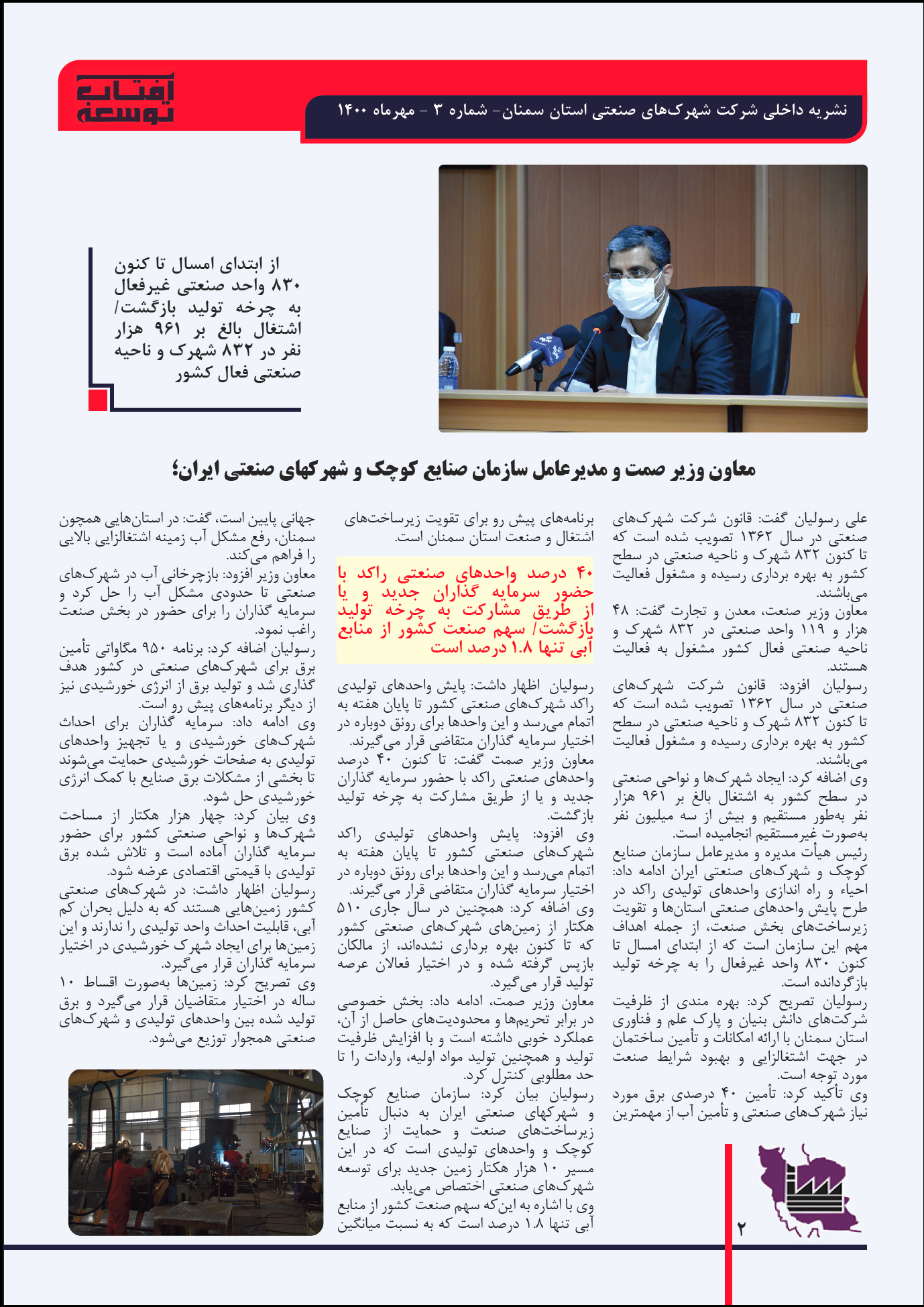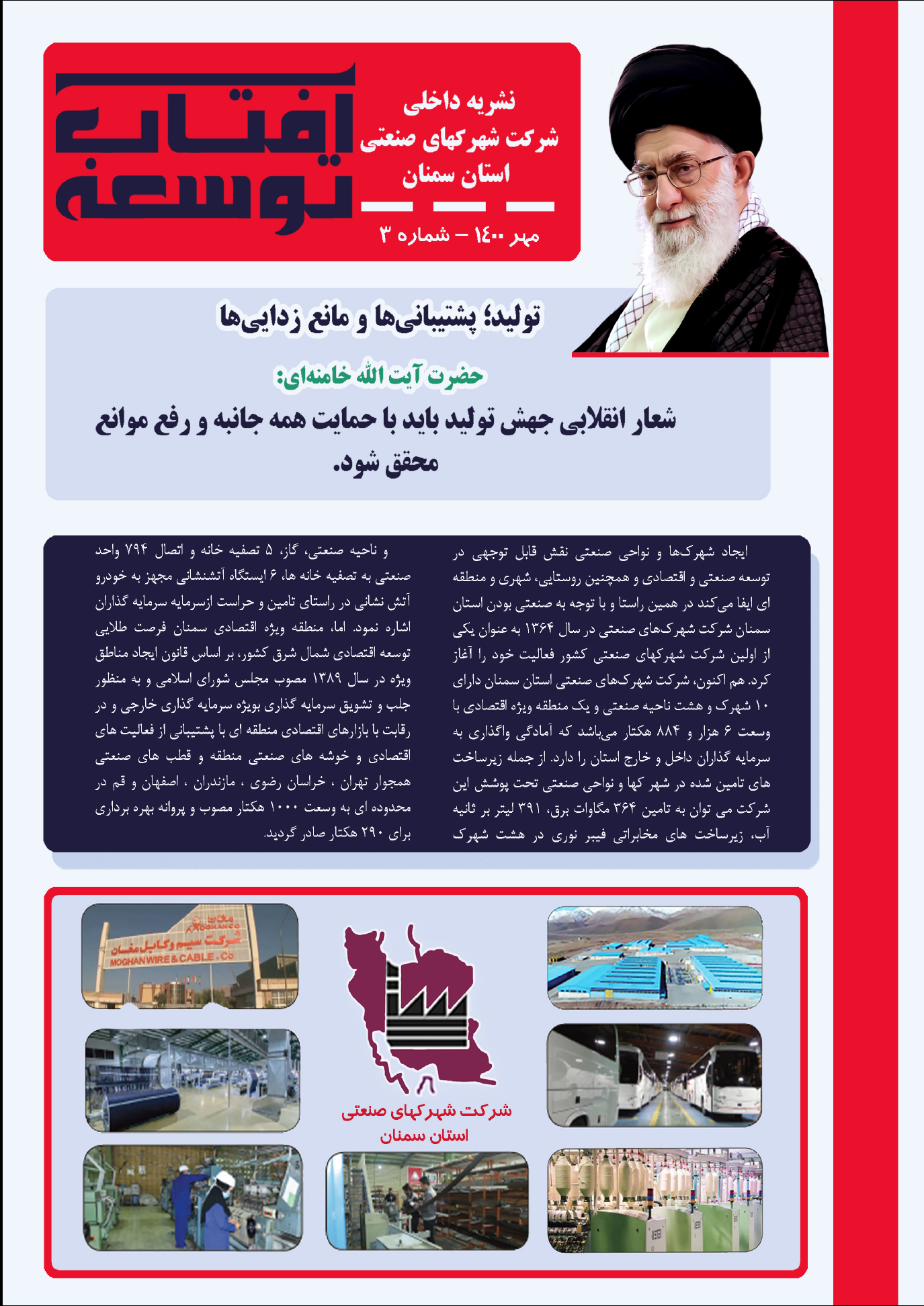 نشريه الكترونيكي شركت شهركهاي صنعتي استان سمنان « آفتاب توسعه»- شماره 3