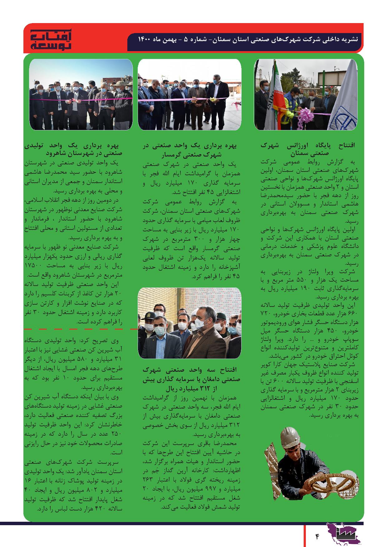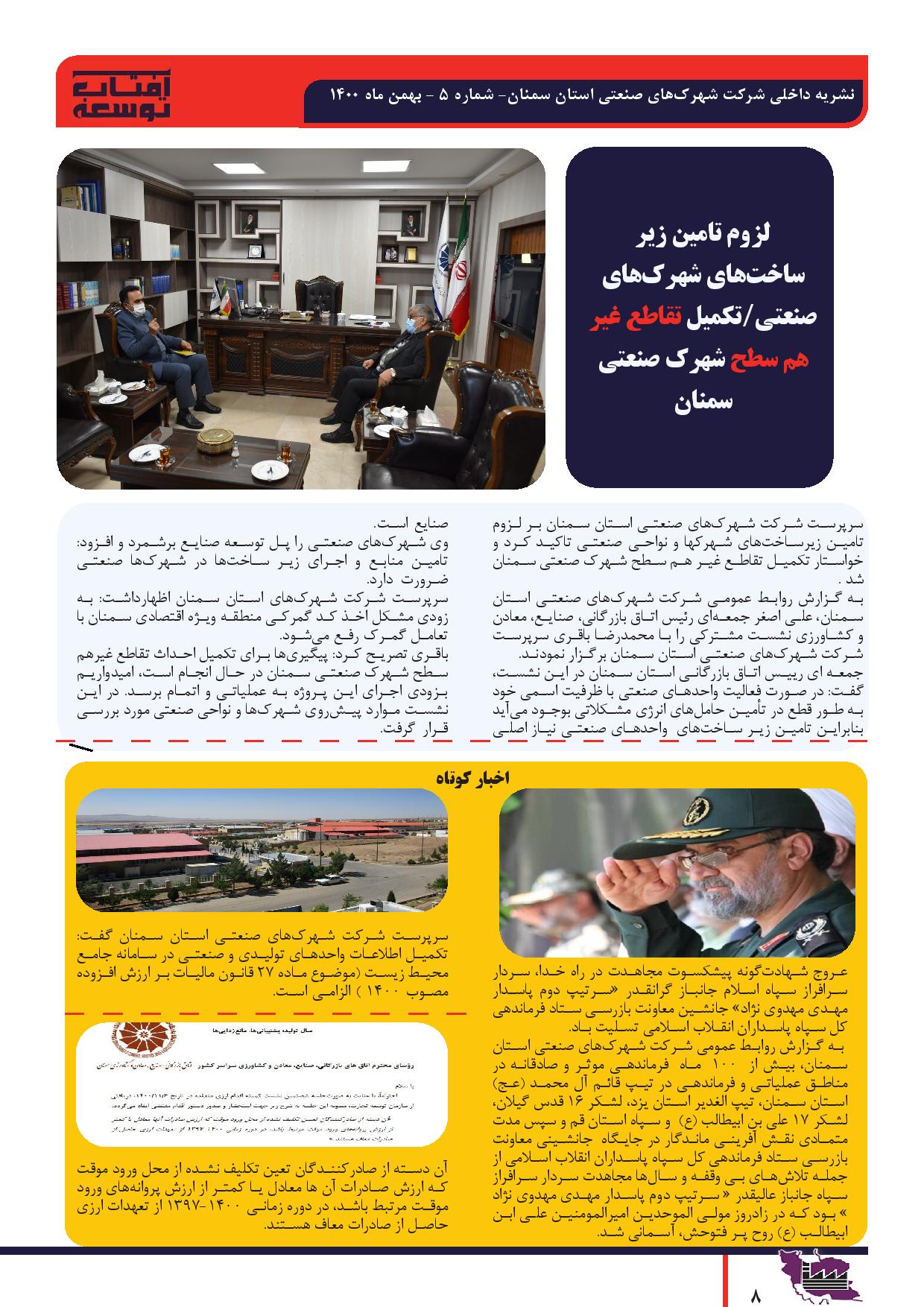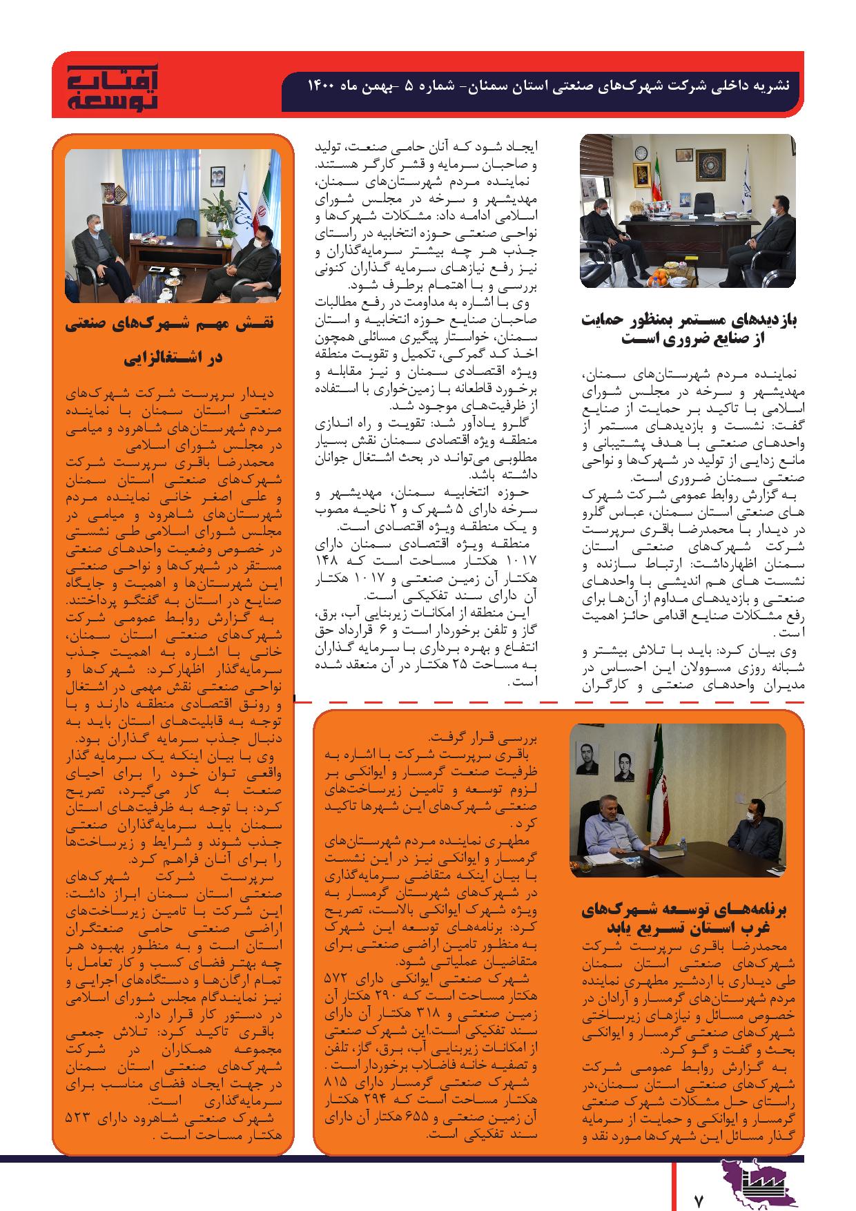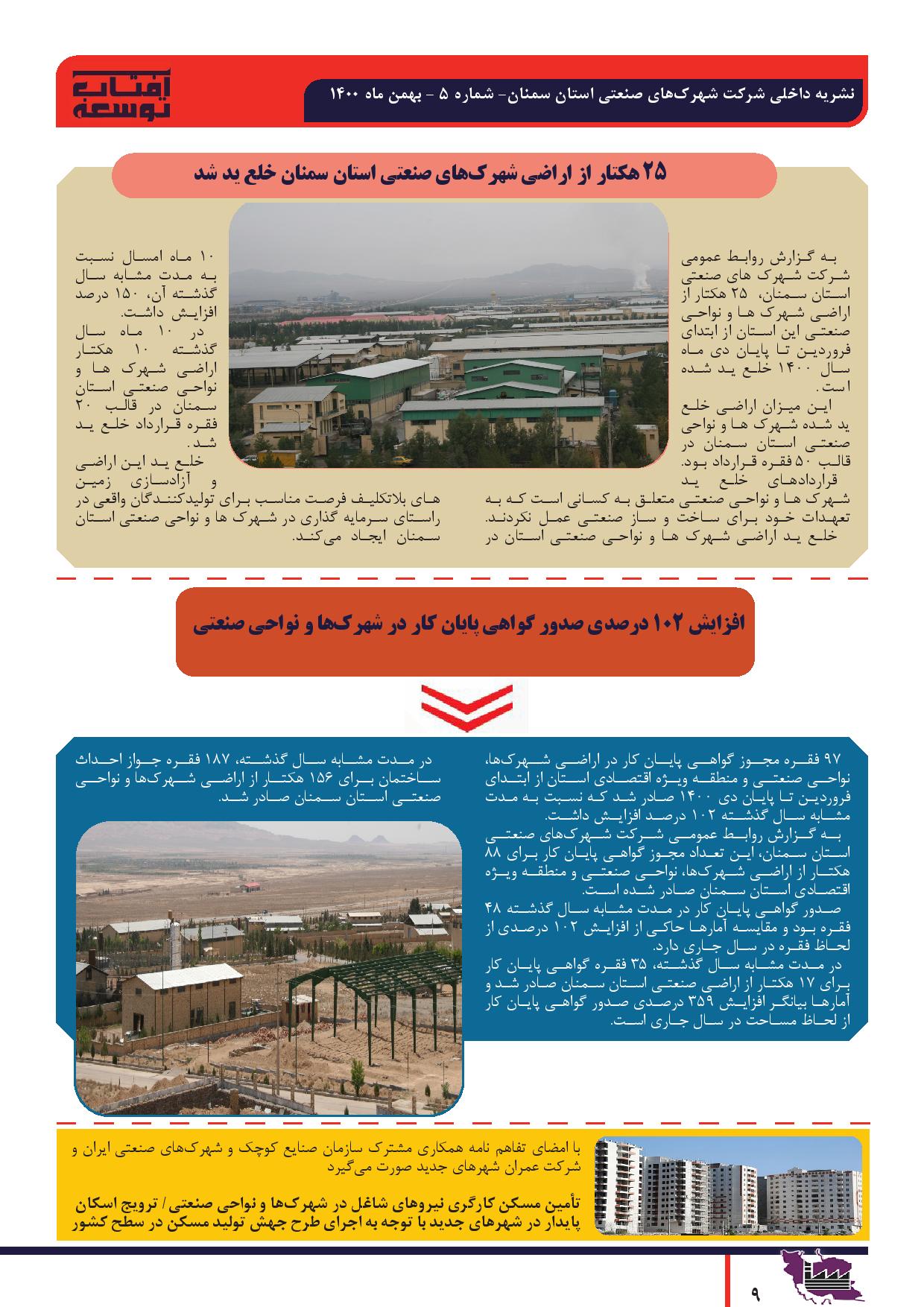 نشريه الكترونيكي شركت شهرك‌هاي صنعتي استان سمنان « آفتاب توسعه»- شماره 5