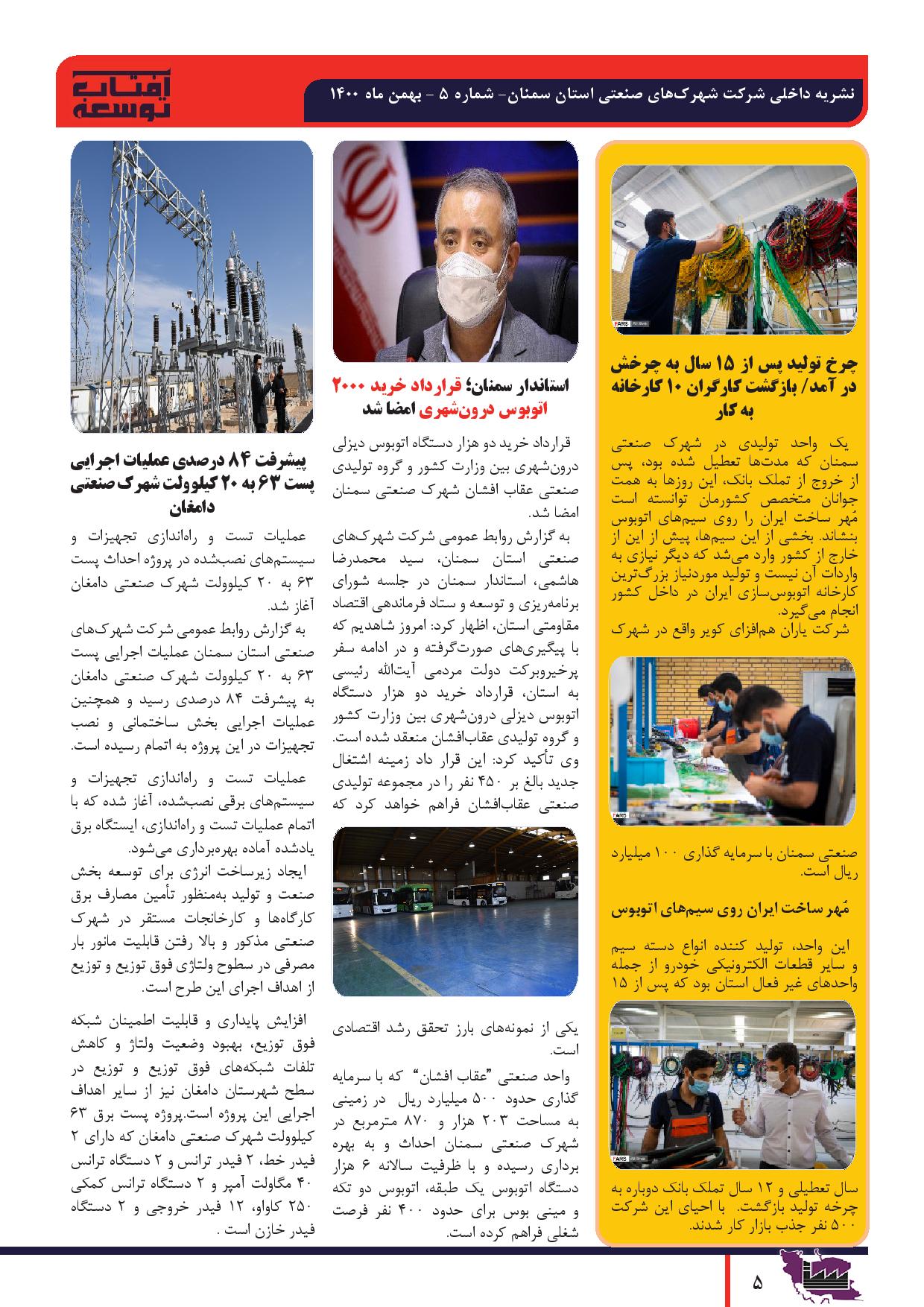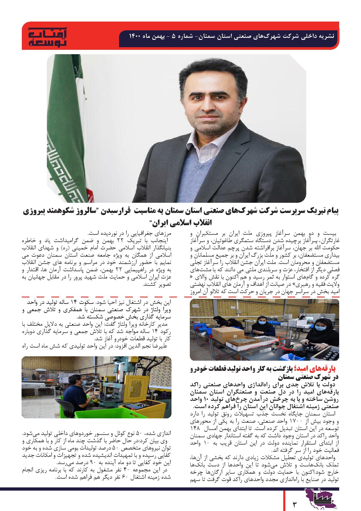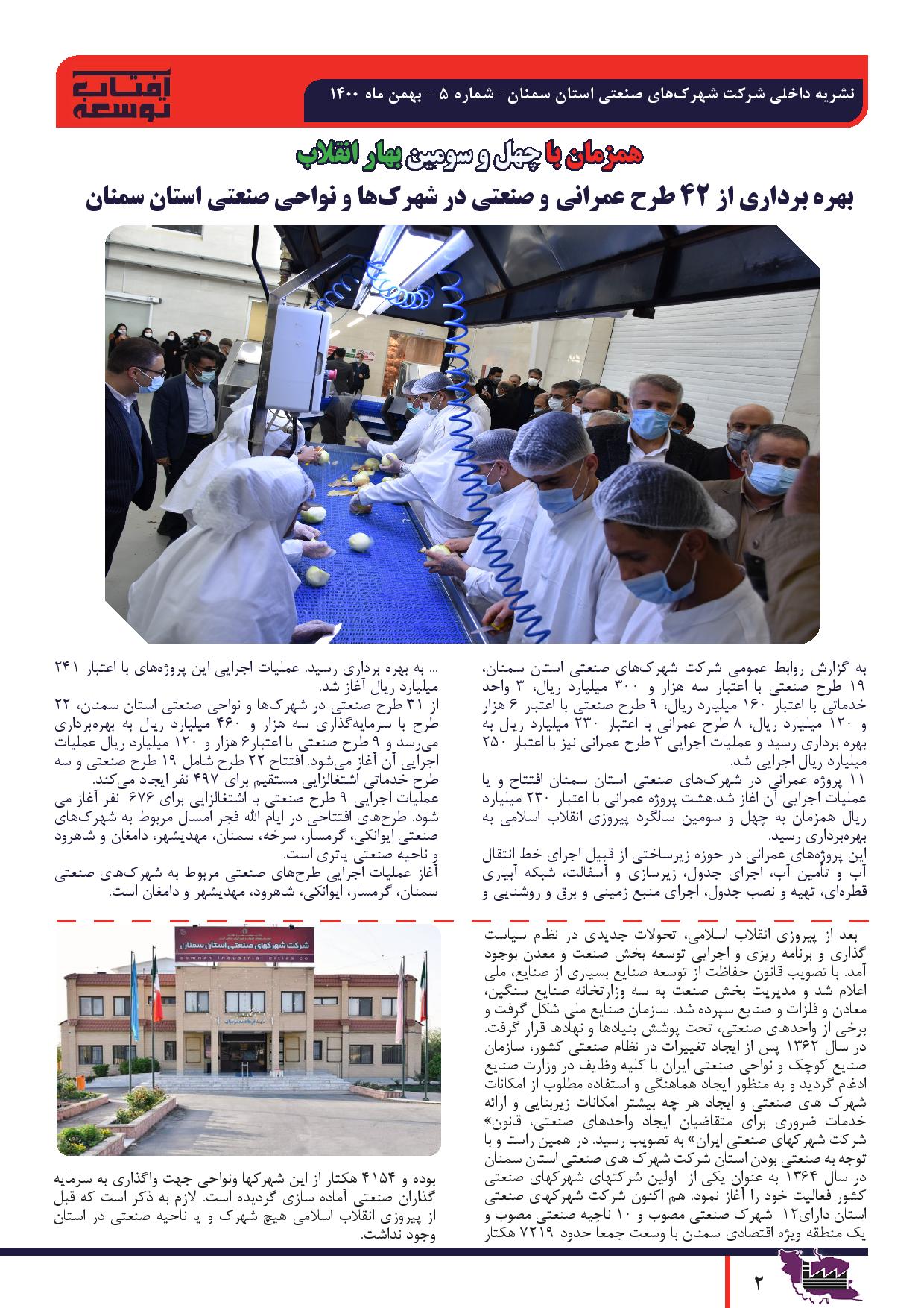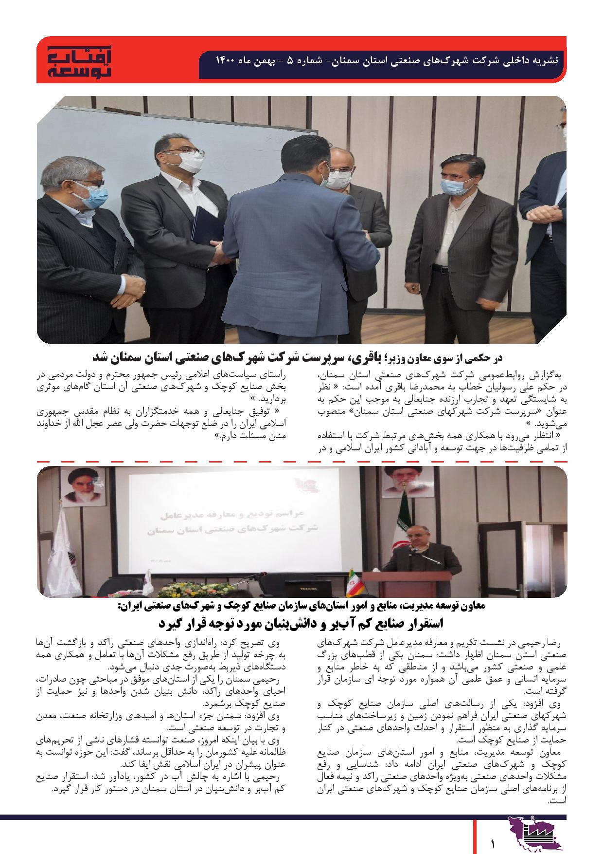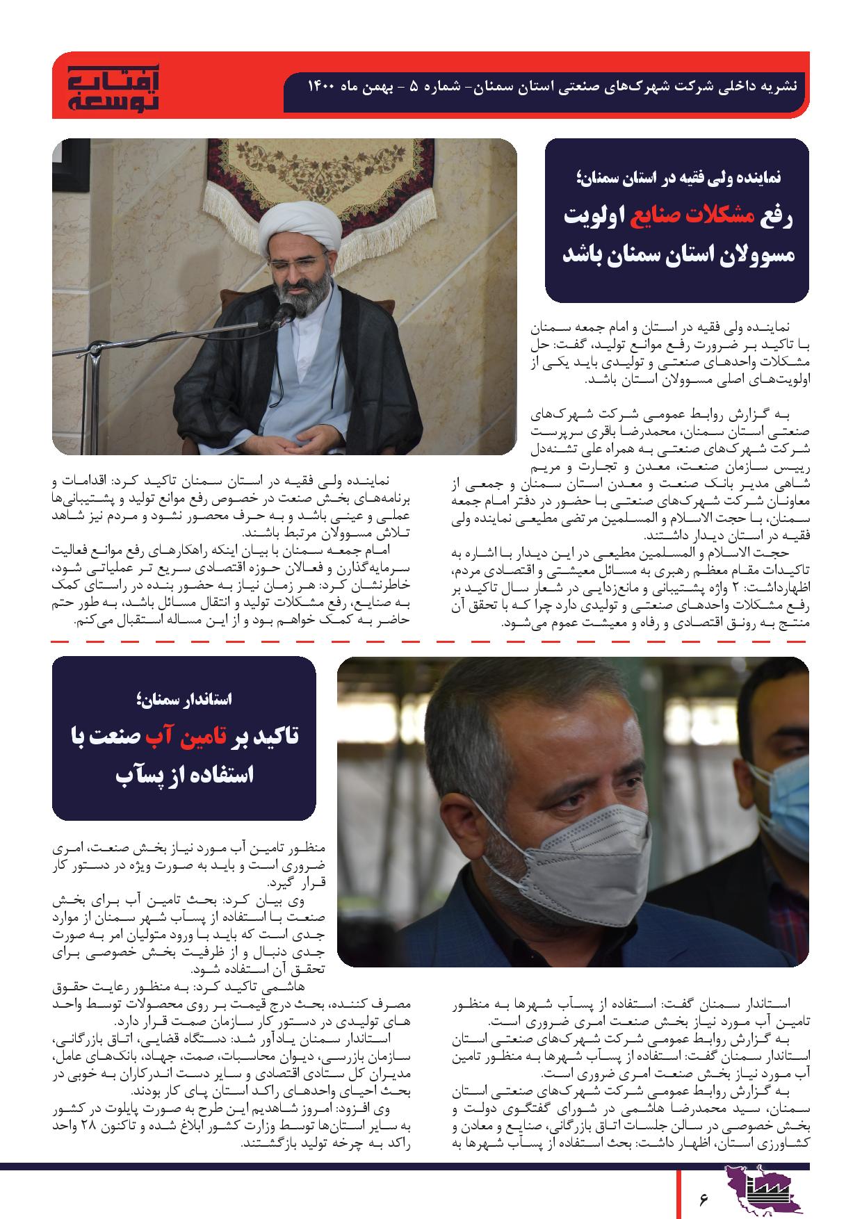 نشريه الكترونيكي شركت شهرك‌هاي صنعتي استان سمنان « آفتاب توسعه»- شماره 5