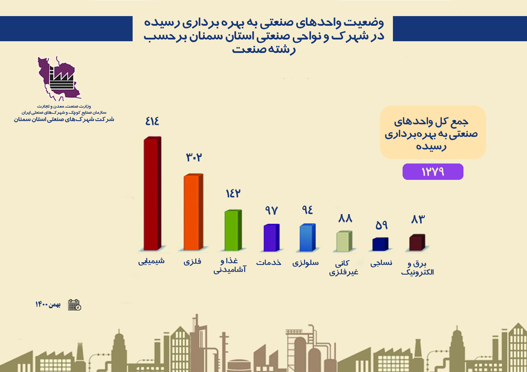 وضعيت واحدهاي صنعتي به بهره برداري رسيده در شهرك و نواحي صنعتي استان سمنان/ برحسب رشته صنعت